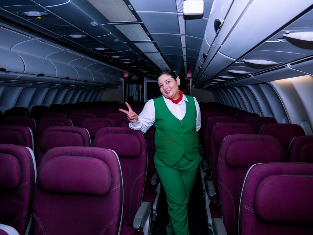 Azman has kept the rear cabins the same, still with Virgin purple seats in place. The premium economy and Upper Class cabins have been refitted with standard economy seats in a variety of colors, making for a total of 411 economy class seats. In addition to this, there are just two business class seats, situated at the front and in the middle of the economy class cabin.