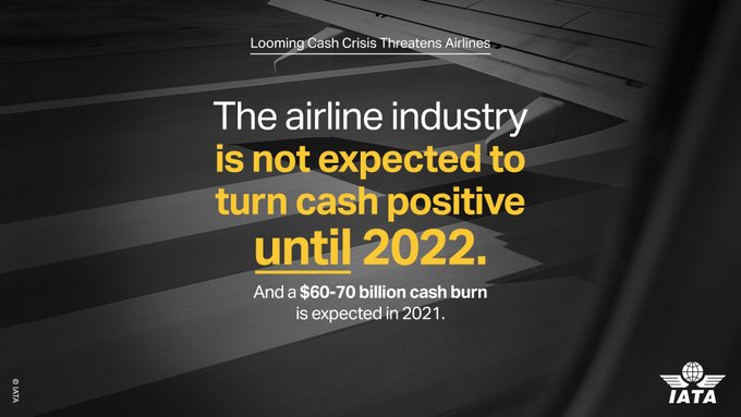 The International Air Transport Association (IATA) has called the attention of stakeholders that the global airline industry will burn through $77 billion in cash during the second half of 2020 (almost $13 billion/month or $300,000 per minute), despite the restart of operations. The slow recovery in air travel will see the airline industry continuing to